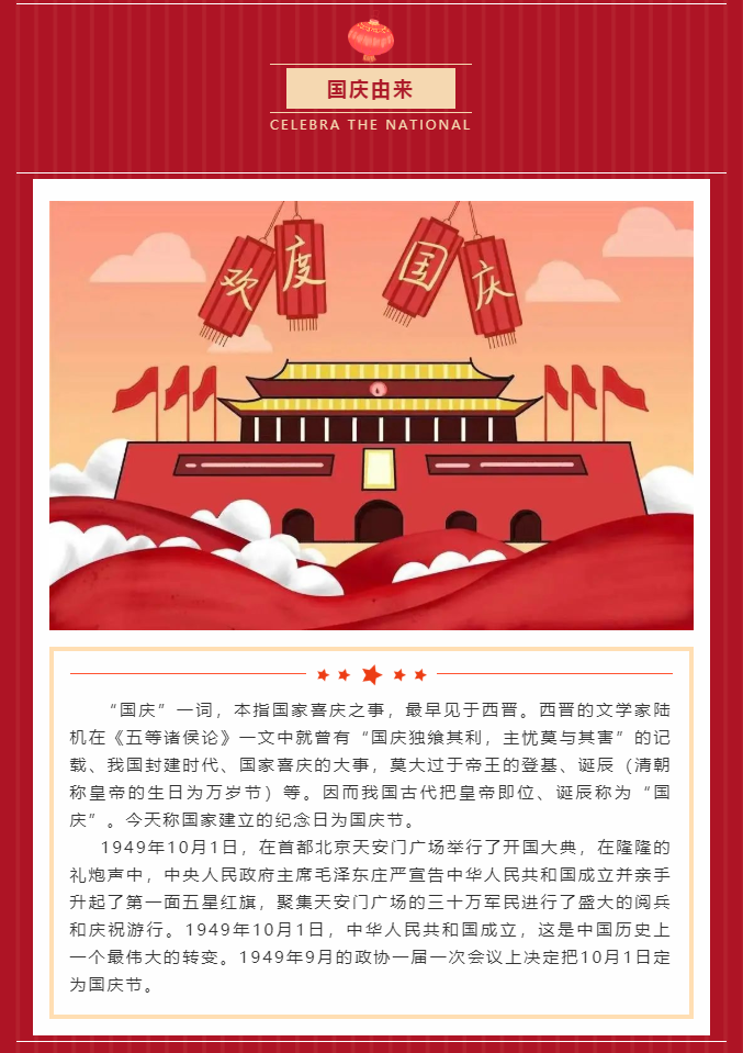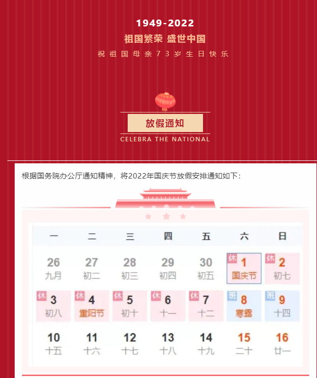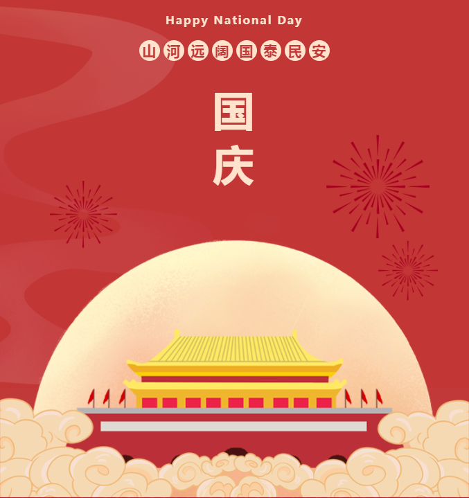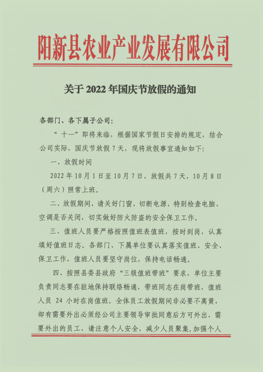 在这举国同庆的日子里,阳新县农发公司全体 职工衷心祝愿您及您的家人,国庆假期愉快!